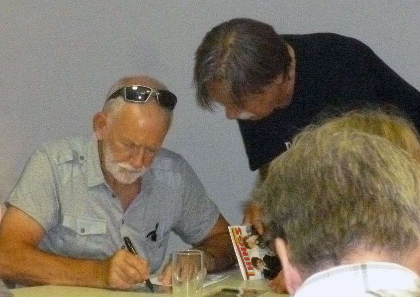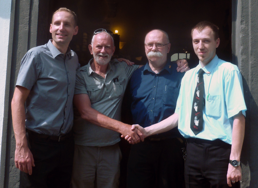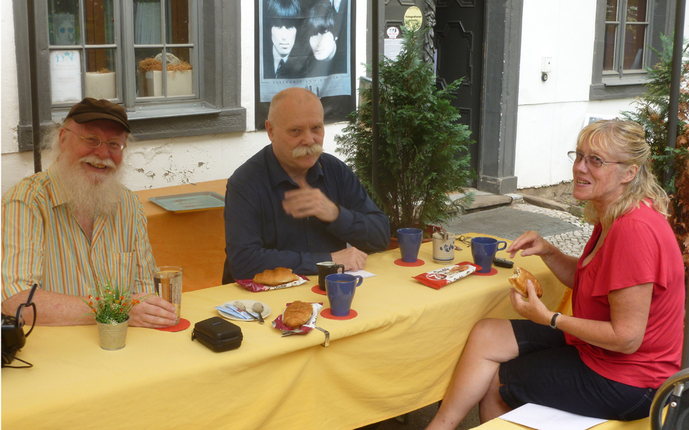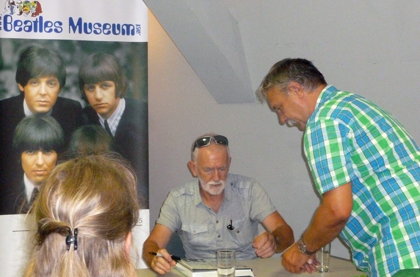 Rod was invited to come to the Beatles Museum in Halle, not far from Leipzig in Germany at the end of July 2014 to talk about the early days of Skiffle and the Quarrymen. The Museum came as a great surprise to him as although he had long been aware of its existence he had no idea how fantastic it was. Situated in a beautiful mediaeval building near the centre of the picturesque town of Halle, the museum contains a positive wealth of Beatles memorabilia and artefacts. It is supported by a shop which sell absolutely all kinds of Beatles souvenirs and there is also a very pleasant cafe which spills out into the leafy courtyard on sunny days. Although Halle is a bit off the beaten track for the average British tourist, it is very well worth a small diversion, especially if you are heading for Dresden or even Berlin. On Saturday evening there was a special “Meet and Greet” dinner in the museum and on Sunday Rod gave his talk in German, illustrated by a selection of digitally projected photographs, many of them taken by his father, James Davis, in the nineteen fifties. This was followed by a marathon autograph session. The only downside of the visit was that somehow Rod stupidly managed to lock himself out of his hotel room, leaving the keys in the locked inside! The solution to this involved some improvised burglarising techniques including an attempt to remove the hinge pins from the door, but eventually all was saved by the production of a paper clip from a lady’s handbag which enabled them to poke the keys out of the lock from the outside! Thanks to Rainer, Martin and Stefan for a great weekend.
